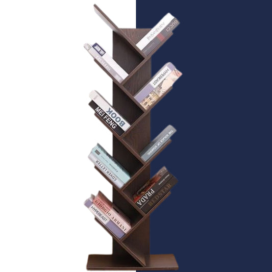 رف كتب 8 طبقات بتصميم شجرة مع حامل بني