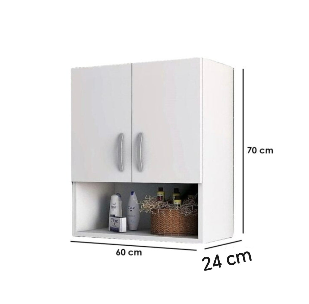 تقدم وحدة تخزين حمام مطبخ ضلفتين واتنين رف مغلق ورف مفتوح مساحة تخزين مثالية لاحتواء المستلزمات المختلفة.