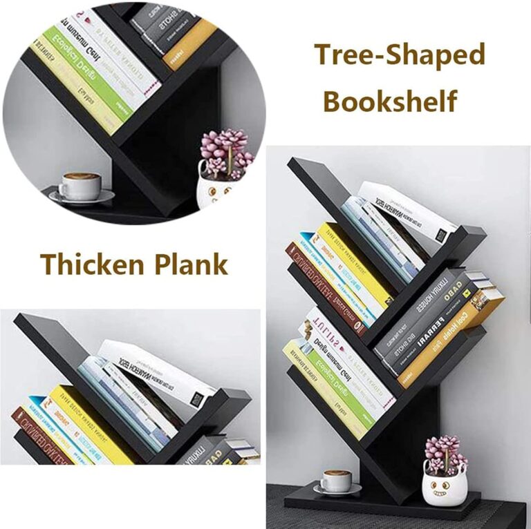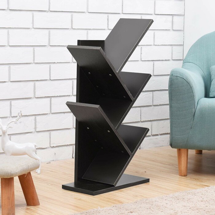 رف كتب أسود من 4 طبقات بتصميم شجرة
