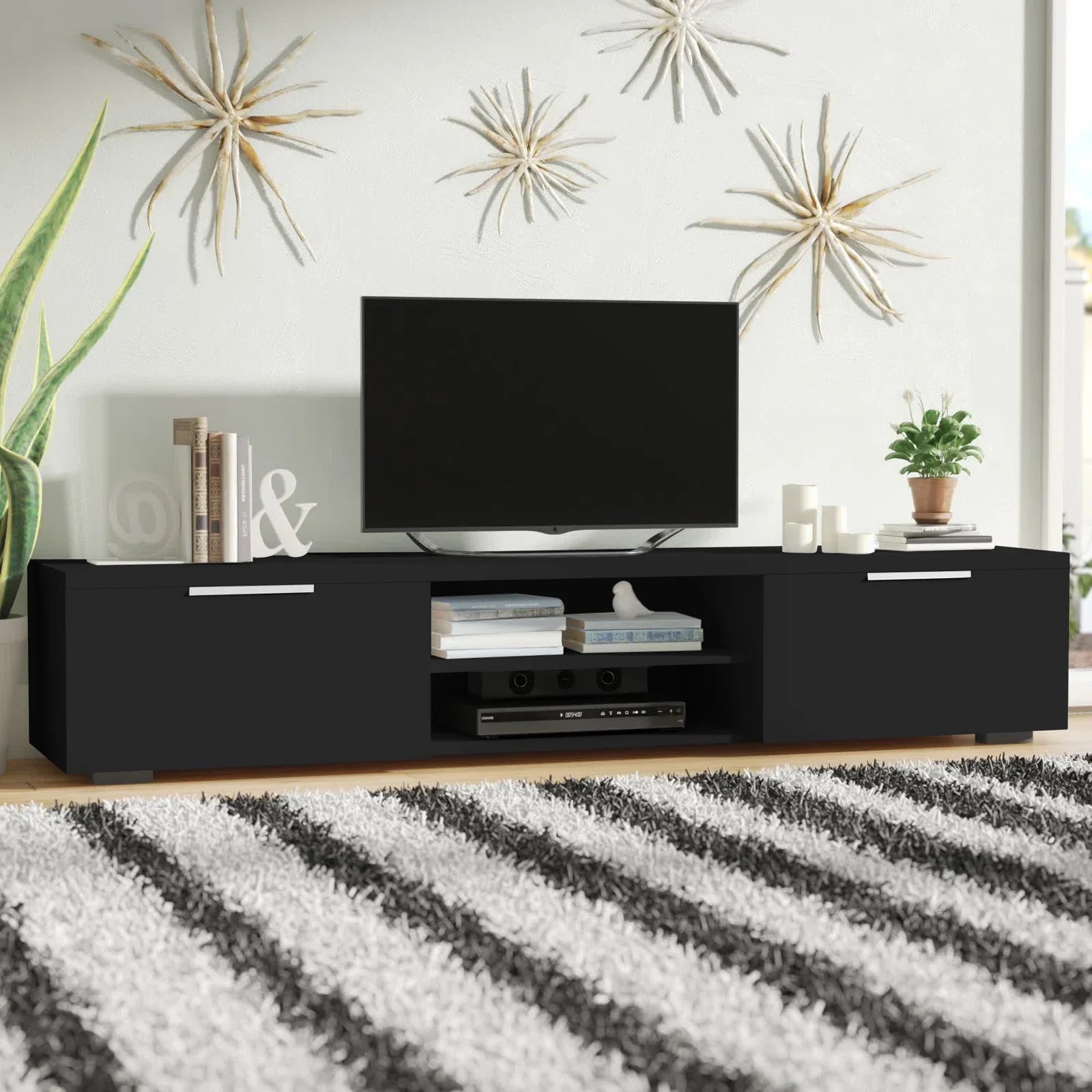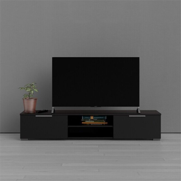 وحدة تليفزيون خشب أسود رفين و ضلفتين تخزين 160 × 40 × 40 سم - وحدة تلفزيون خشب مودرن ام دي اف