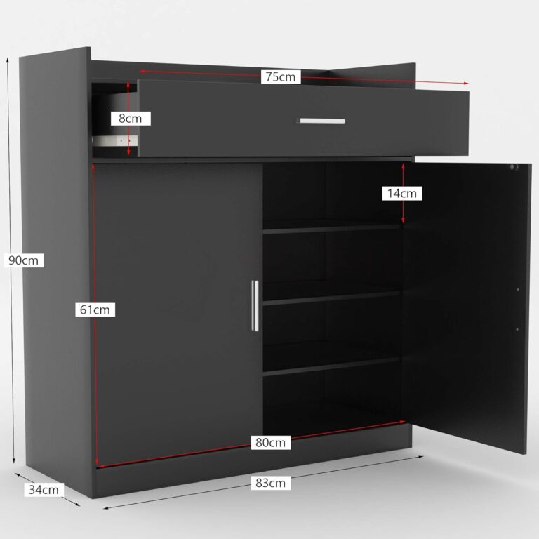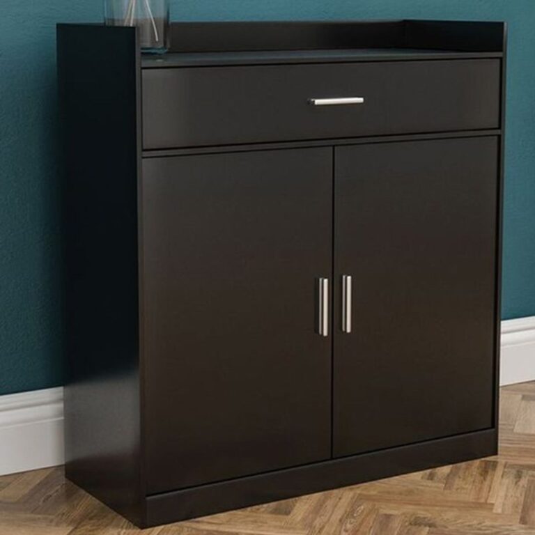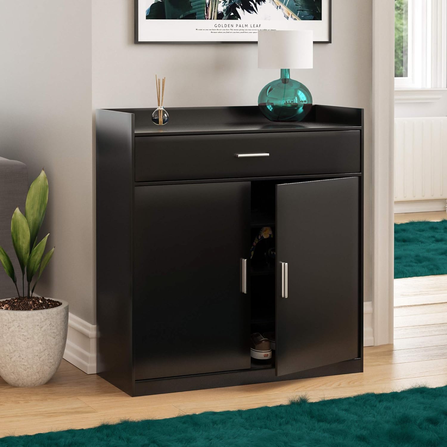 خزانة أحذية عصرية ببابين و1 درج، منظم تخزين لخزانة الرواق، رف حامل للأحذية، وحدة خزانة جانبية خشبية، أسود