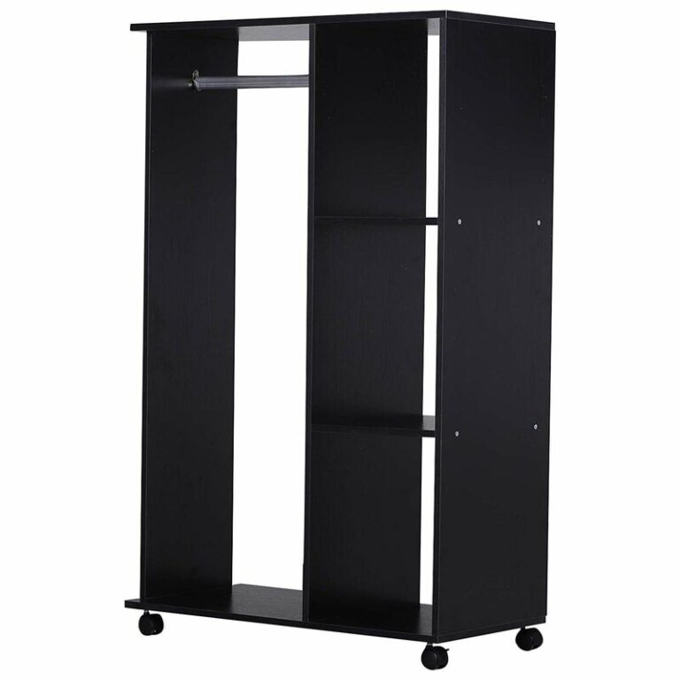 دولاب دريسنج صغير أسود خشب رف معلق و 3 أرفف جانبية - وحدة تخزين ملابس - خزانة ملابس